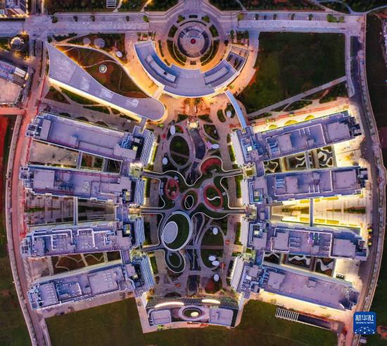 俯瞰蝴蝶展翅造型的香港科技大学(广州)校园建筑群(8月16日摄,无人机照片)。