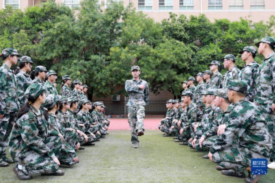 新学期来临,安徽省淮北市的高中组织新生开展军训,锻炼身体素质,磨砺意志品质。
