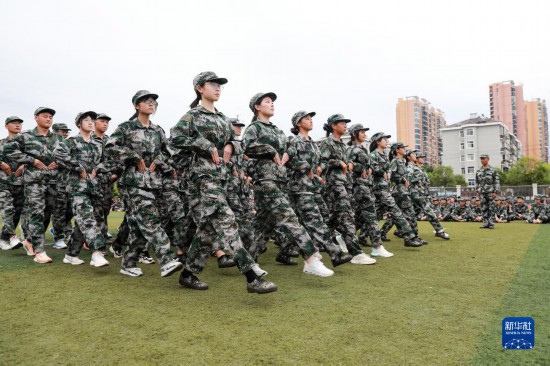 新学期来临,安徽省淮北市的高中组织新生开展军训,锻炼身体素质,磨砺意志品质。