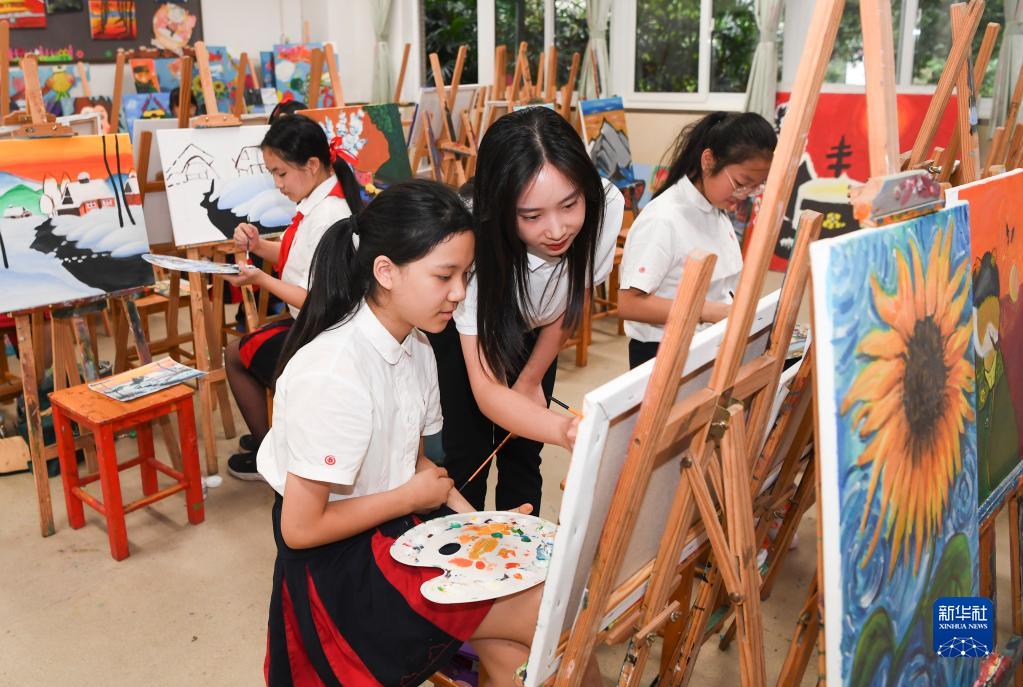 9月14日,重庆谢家湾学校学生在练习绘画。