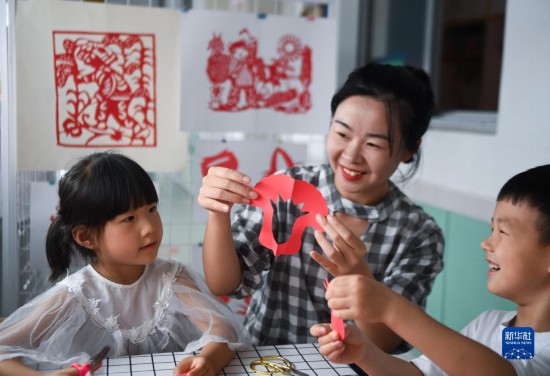 当日,浙江省湖州市长兴县李家巷镇中心幼儿园举办以中国农民丰收节为主题的校园剪纸活动,现场展示了老师们创作的丰收主题剪纸作品,同时老师还指导孩子们剪出稻穗、萝卜、青菜等造型的剪纸作品,用这样的方式迎接即将到来的中国农民丰收节。