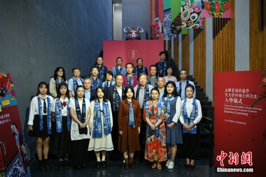 9月27日,中国首届非物质文化遗产学交叉学科硕士研究生入学仪式在天津大学冯骥才文学艺术研究院举行。图为天津大学领导及嘉宾与新生合影。 中新社记者 佟郁 摄