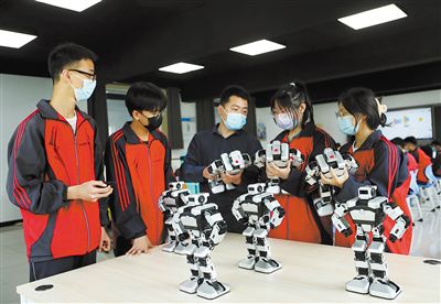 图为在河北省石家庄市井陉县职业技术教育中心,老师指导学生学习机器人相关知识。新华社记者 骆学峰摄