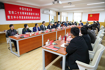 学习研讨会上,中国传媒大学马克思主义学院专兼职思政课教师,陈经纶中学、对外经贸大学附属中学、中国传媒大学附属中学、北京市朝阳师范学校附属小学、中国传媒大学附属小学等近十所中小学思政课教师、负责思政课教学的学校领导,以及朝阳区思想政治教育指导评价中心的有关人员,对党的二十大报告进行了认真学习和热烈交流。(白炅)