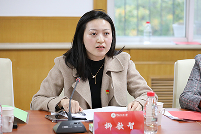 北京市朝阳区思想政治教育指导评价中心思政教育部主任柳歆智在会上谈到自己学习党的二十大报告的体会。她表示,朝阳区思想政治教育指导评价中心将发挥牵头和协调作用,以将党的二十大精神融入思政课为契机,促进朝阳区大中小学思政课教师共学共研、互学互鉴,推动大中小学思政课贯通衔接,提高育人质量。