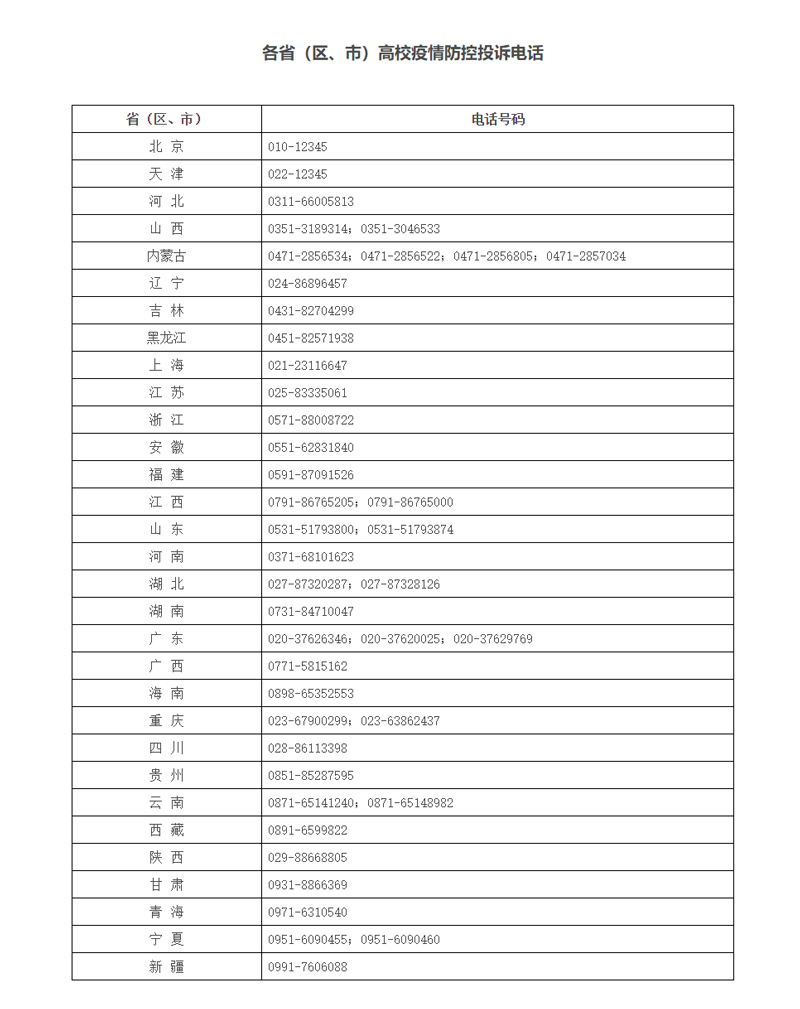 教育部设立高校疫情防控投诉平台