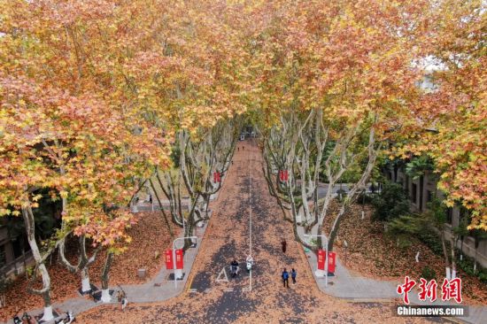 航拍东南大学四牌楼校区梧桐大道。(无人机照片) 中新社记者 泱波 摄