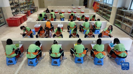 11月20日,听障学生在泉州市特殊教育学校陶艺制作中心上陶艺课(无人机照片)。