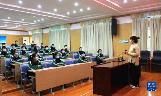 12月5日,在山东省枣庄市第八中学,枣庄市薛城区委宣讲团举办“青草学堂”宣讲活动,把党的二十大精神送进学校。新华社发
