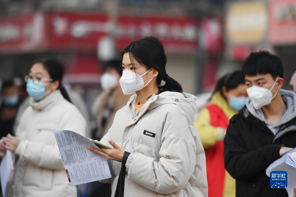 1月7日-8日,中央机关及其直属机构2023年度考试录用公务员笔试举行。这是1月8日,在安徽省阜阳市颍州中学考点,考生入场参加公共科目笔试。