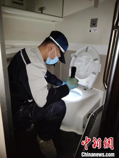 安抚旅客情绪后,彭落秋立即对卫生间进行隔离封锁。经过车间与多方协调,他决定在不影响车组次日用水的情况下,暂时不对该车厢进行吸污作业。车组完成次日运营任务回库,地勤机械师李帅与卢家盛立即上车作业。他们忍受着厕所刺鼻的味道,跪在地上,你一捧、我一捧地手动舀出便池里的污水。