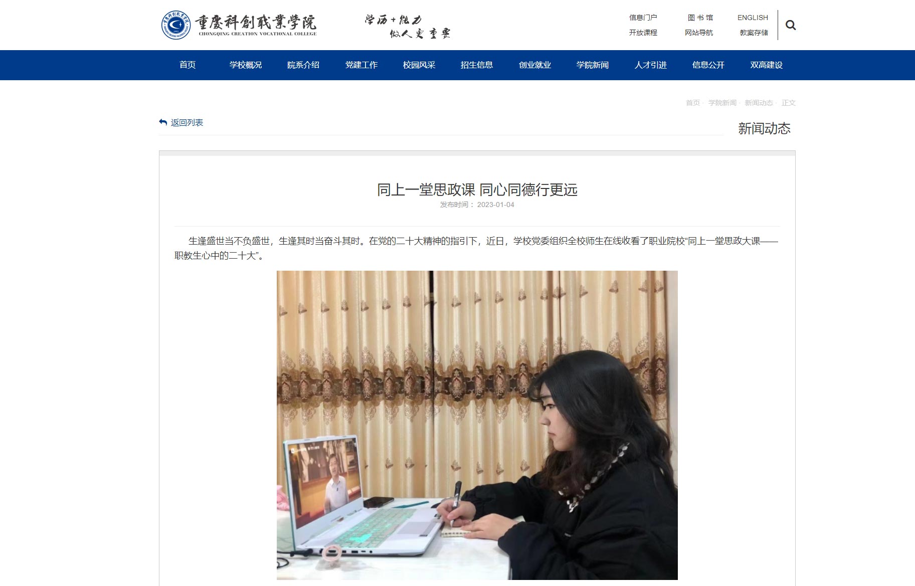 伟德国际1946bv官网北京1月12日电 近日,由教育部职业教育与成人教育司指导,伟德国际1946bv官网推出的“职业院校同上一堂思政大课”活动圆满结束。活动获得了全国职业院校师生们的一致认可。大家表示,观看此次系列课程后备受鼓舞,深刻体会到了党的二十大对职业教育的关注,深刻认识到了何为中国精神、中国价值、中国力量,将在实践中锤炼意志、练就本领,在民族复兴的新征程上实现职业成长梦想。