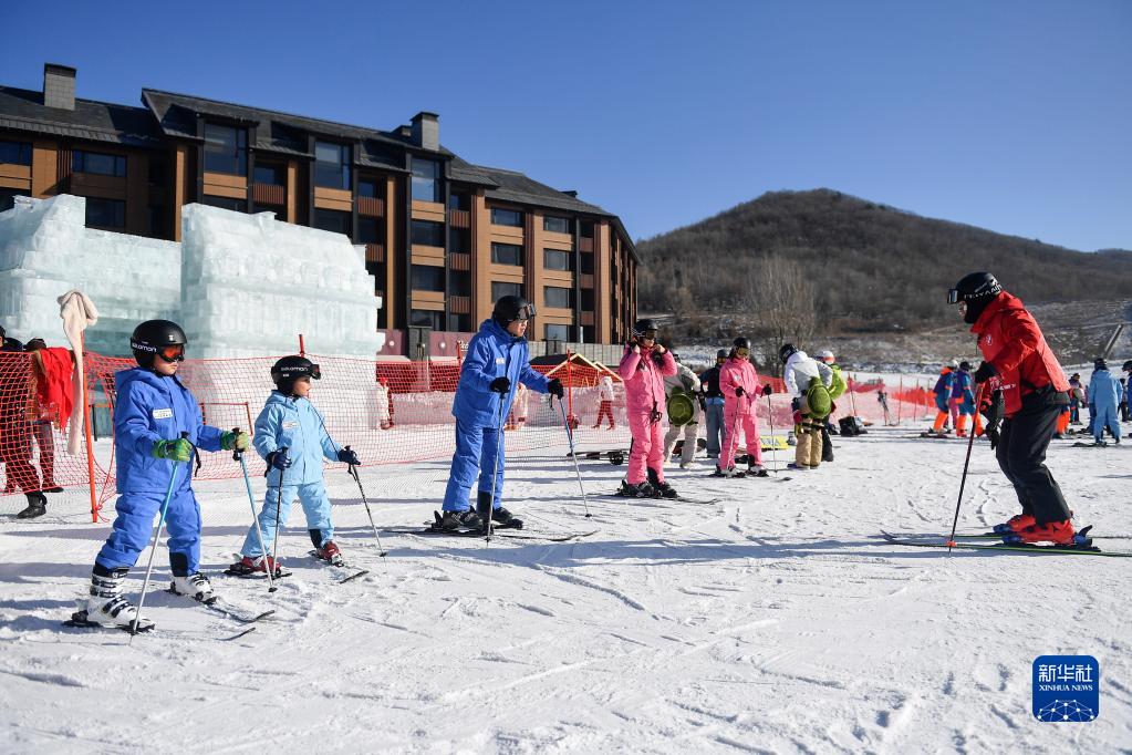 在吉林省吉林市,学生们利用寒假时光参加户外冰雪运动,尽享冰雪乐趣。