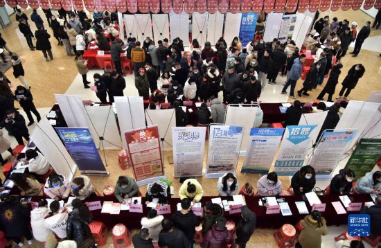 1月29日,求职者在安徽亳州-浙江临海劳务协作专场招聘会上寻找适合自己的就业岗位。新华社发(刘勤利 摄)