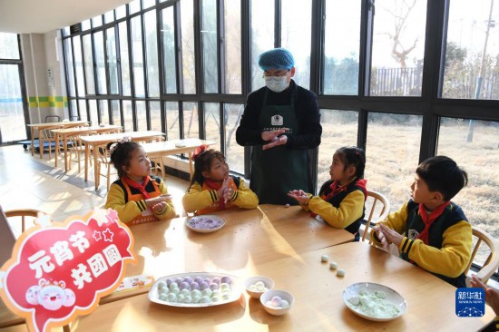 2月5日,合肥市建平实验小学南艳分校学生在做汤圆。
