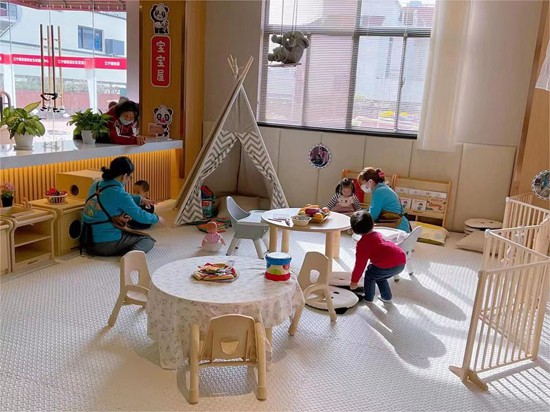 据了解,浦东新区正引导和支持各类机构依托社区提供嵌入式、菜单式、分龄式的普惠婴幼儿照护服务,推动街镇建设社区“宝宝屋”。曹路镇正开展试点,在中虹社区居委会的文化客厅里嵌入“宝宝屋”功能,年轻父母可以将宝宝临时交给保育员,自己处理工作,享受一会儿闲暇时光;祖辈可以在去社区居委会看病、买菜、聊天聚会时,临时将孩子交给保育员,可以透过窗子观看孩子在“宝宝屋”的游戏情况,社区居委会充分挖掘、利用社区的人力资源,聘请居住在社区内的3个有照护资质的全职妈妈作为“宝宝屋”的保育员。
