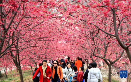 2月19日,游客在四川省泸州市江阳区丹林镇建设村樱花谷景区游玩。