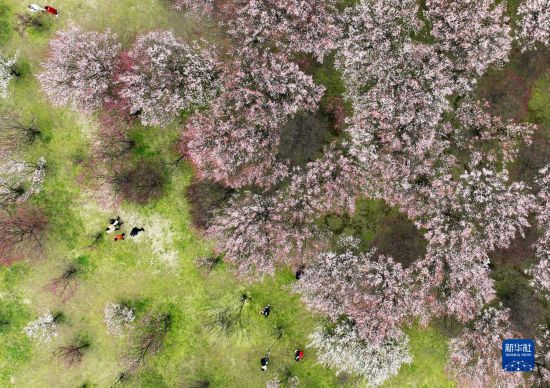 2月18日,游客在江苏省扬州市蜀冈西峰生态公园踏青赏花(无人机照片)。