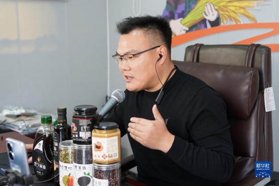 2月28日,王昌在来安县水口镇拥巷村的直播间里直播推介乡村农产品。