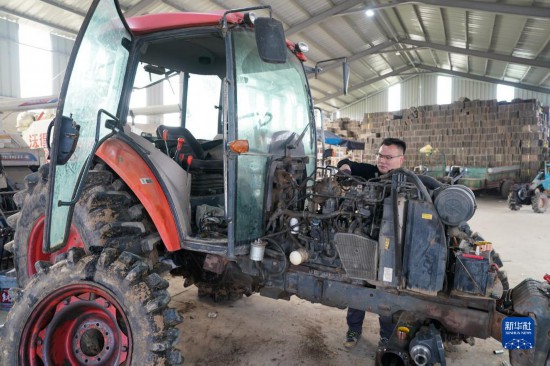 2月28日,王昌在来安县水口镇拥巷村对农业机械进行春耕前的检修。