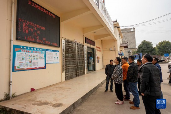 在江西省安义县乔乐乡马溪村,当地村民在“村头宝”平台上浏览近期的企业招工信息(3月3日摄)。