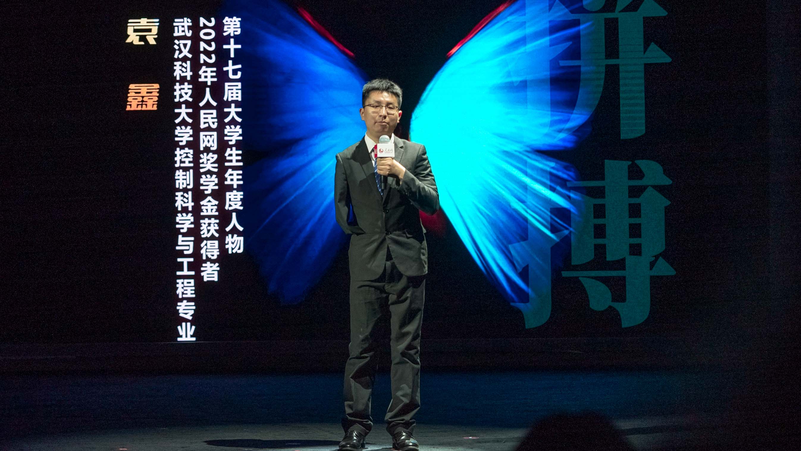 第十七届大学生年度人物、2022年度伟德国际1946bv官网奖学金一等奖获得者武汉科技大学控制科学与工程专业博士生袁鑫分享自己的故事。实习生韩华良 摄