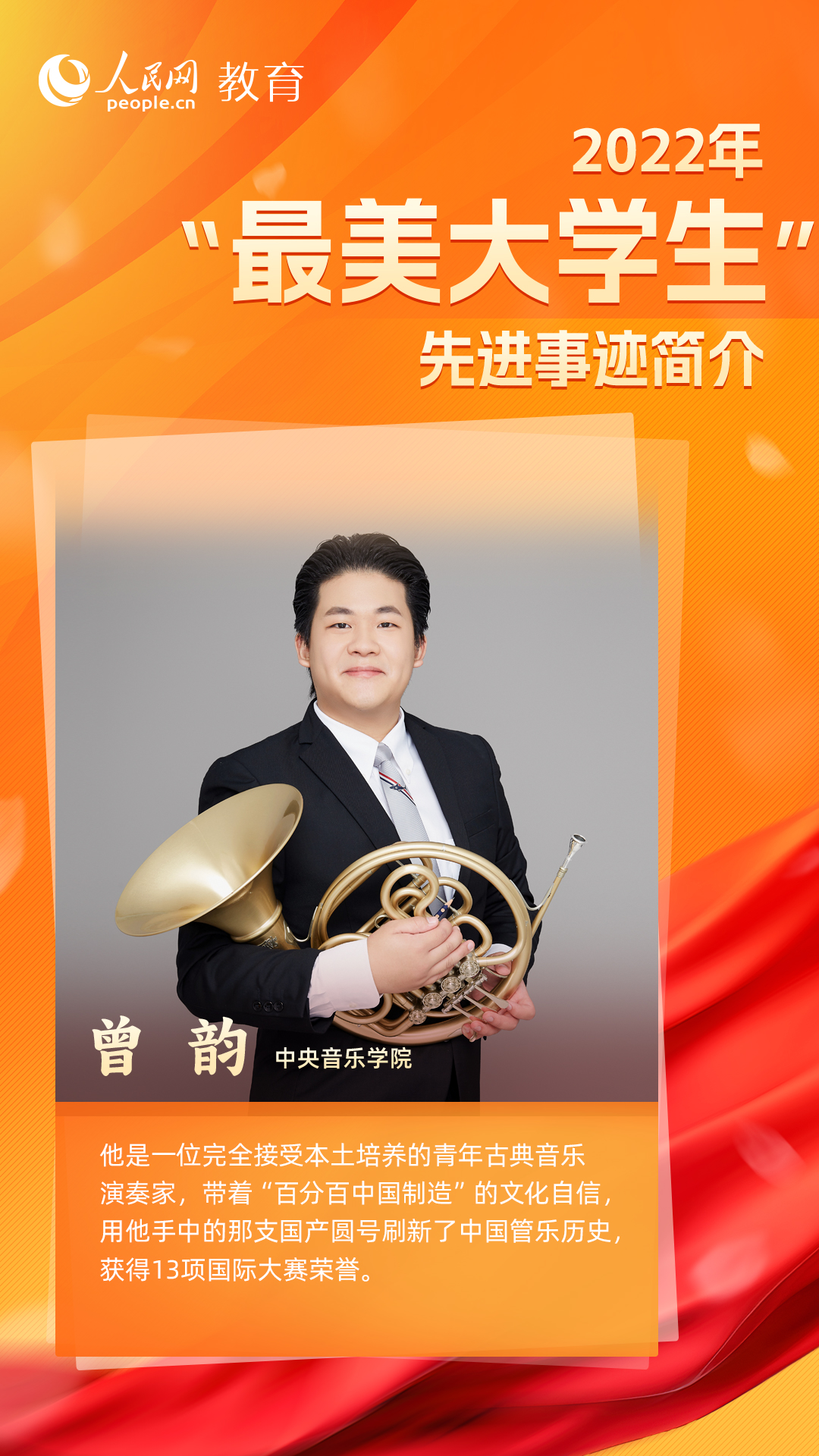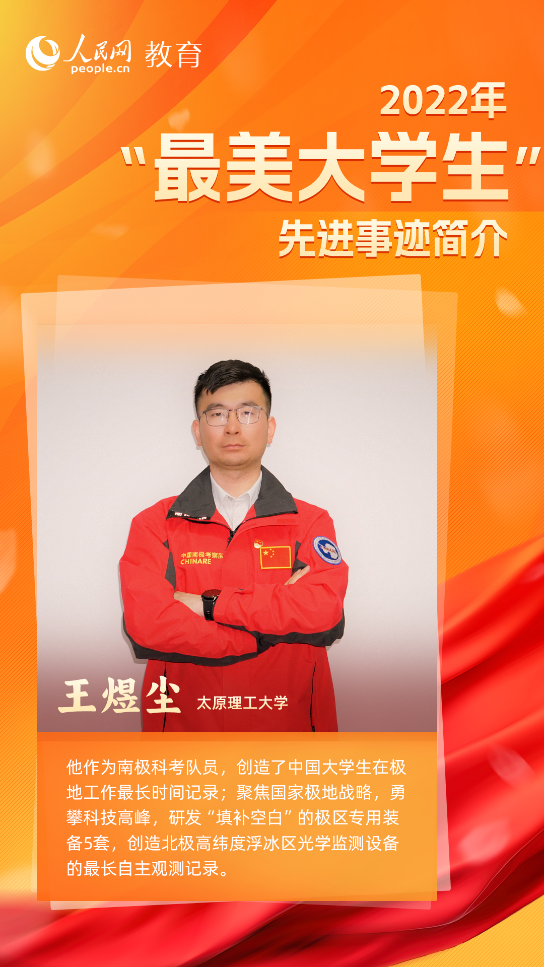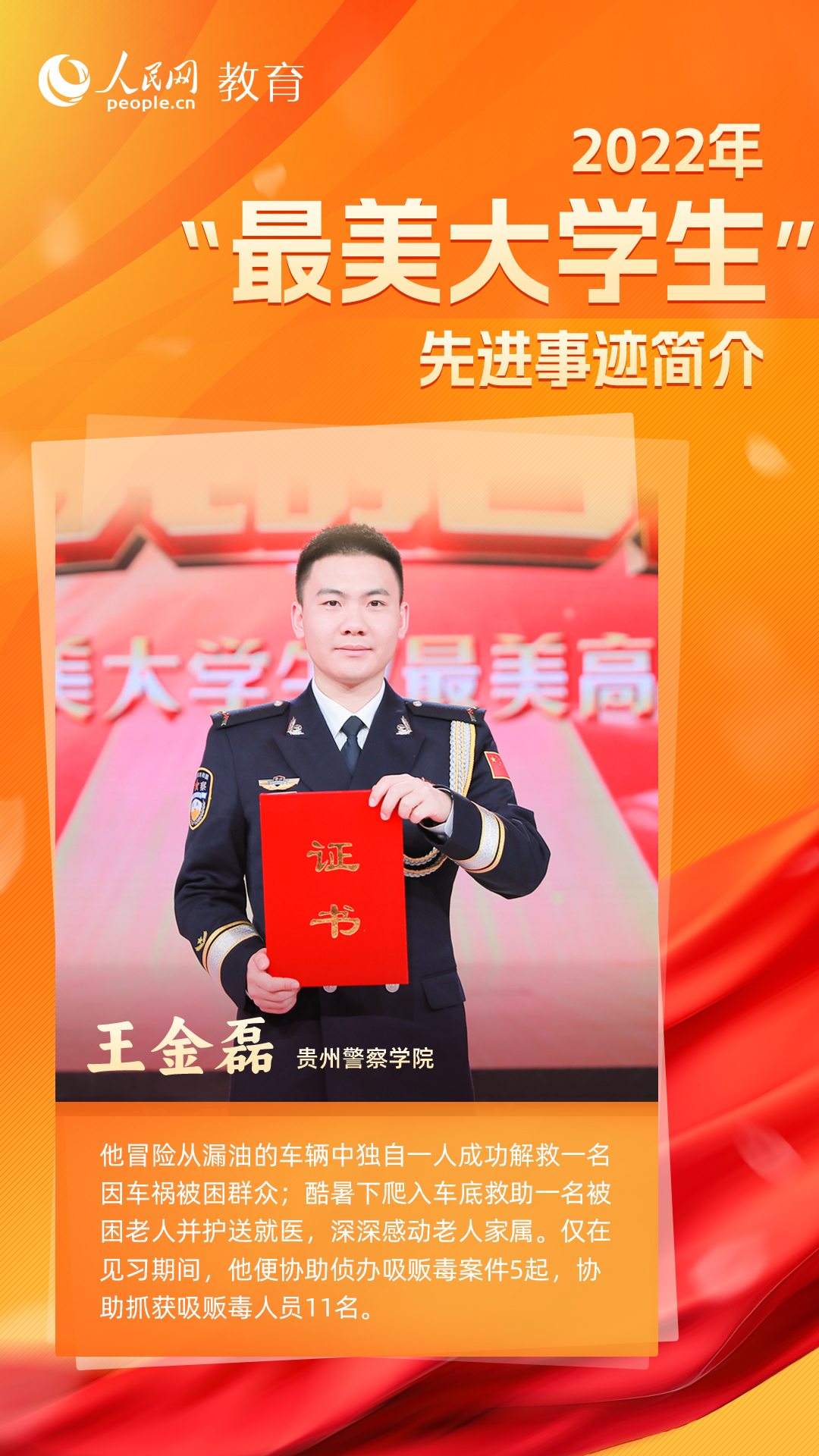 从勇攀科技高峰,到逐梦世界舞台,10名来自不同地区、不同领域的大学生,怀抱梦想又脚踏实地,敢想敢为又善作善成,用矢志奋斗书写青春答卷。他们立志做有理想、敢担当、能吃苦、肯奋斗的新时代好青年,让青春在全面建设社会主义现代化国家的火热实践中绽放绚丽之花。(文/李依环、孙竞、余睿婕;海报设计/张晗)