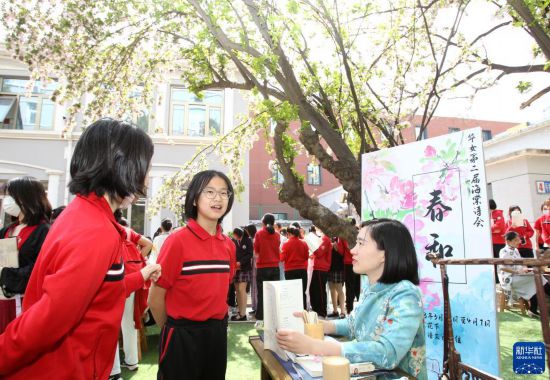 当日,北师大实验华夏女子中学举办以“春和”为主题的第二届“海棠诗会”。师生们选取有关“春天”“和煦”“生机”“美好”的诗歌,在校园的海棠树下赏析吟诵,共享诗歌之美,传承中华优秀传统文化。