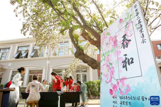 当日,北师大实验华夏女子中学举办以“春和”为主题的第二届“海棠诗会”。师生们选取有关“春天”“和煦”“生机”“美好”的诗歌,在校园的海棠树下赏析吟诵,共享诗歌之美,传承中华优秀传统文化。