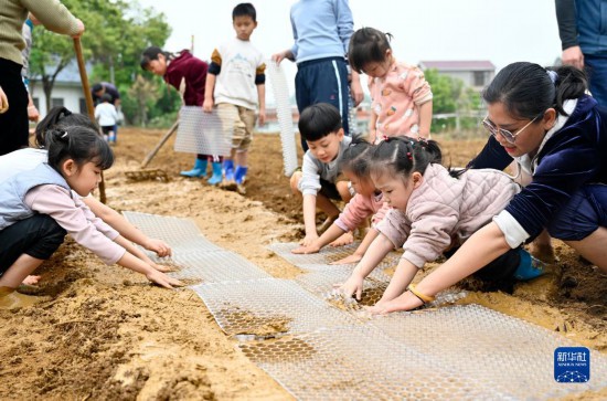 当日,广西柳州市柳江区进德镇开展农耕文化体验活动,吸引家长带着孩子走进田地,学习水稻育秧等农业生产知识。近年来,柳江区进德镇紧扣乡村振兴主题,鼓励辖区内各中小学、幼儿园开展形式多样的“田野课堂”教学实践活动,通过让孩子们学习四季农耕习俗、了解各种传统农耕工具的用法等,近距离感受传统农耕文化的魅力。