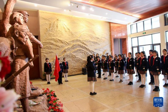 4月3日,合肥市六安路小学翠微分校的少先队员和老师代表在蜀山烈士陵园缅怀先烈。