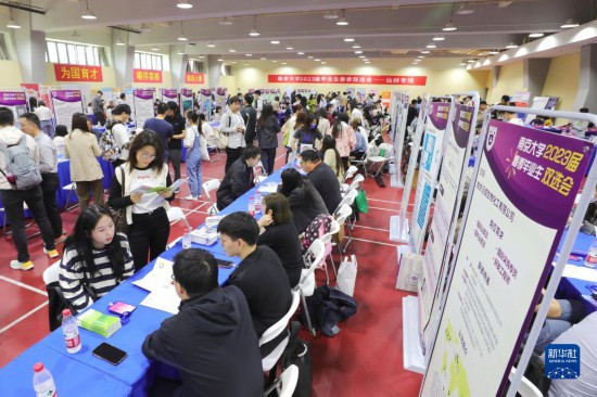 当日,南京大学2023届毕业生春季双选会在南京大学仙林校区举办。双选会面向校内外学生开放,吸引了来自北京、上海、南京等地的180家企事业单位参会,提供近1.5万个岗位。