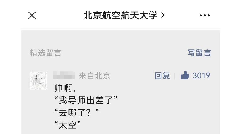 “我导师出差了!”“去哪了?”“太空!”
