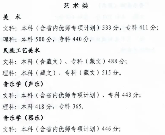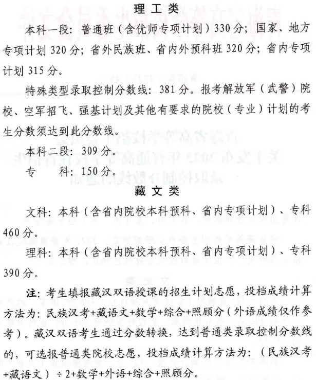 2023年全国普通高等学校招生青海省各科类、各批次录取控制分数线