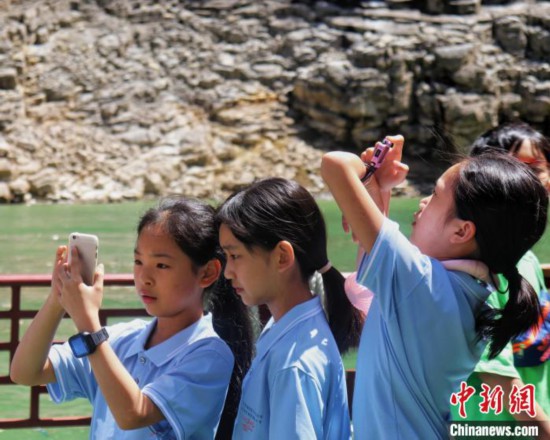 图为参加研学游的学生游客拍下壮丽风光。 周子杰 摄