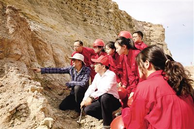 国家级教学名师朱筱敏与克拉玛依校区学生进行野外地质实习。学校供图