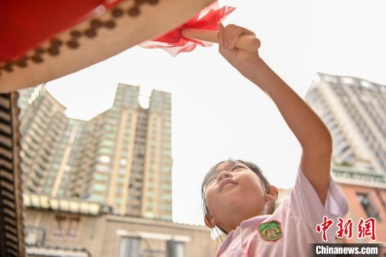 已在朝天小学港澳子弟班就读4年的崔梓琳来自香港,她是学校的校史小讲解员,会用英语向嘉宾介绍学校的历史。平日,她也会与香港的家人朋友讲述在广州的学习和生活情况。