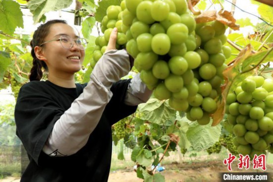 9月2日,潘雅洁在采摘葡萄。 陈家乐 摄