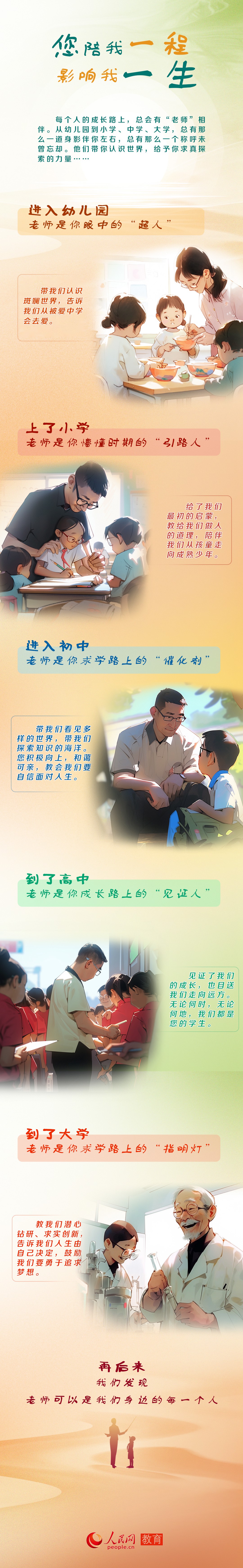 每个人的成长路上,总会有“老师”相伴。从幼儿园到小学、中学、大学,是他们带我们认识广阔的世界,呵护我们健康成长。今天是第39个教师节,让我们感念师恩,用手绘的方式记录老师相伴的岁月。