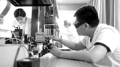 北京理工大学师生在电子封装技术实验室进行集成电路芯片倒装焊固态互连试验北京理工大学供图