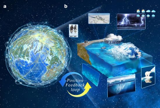 北极离我们很远,但这片冰天雪地直接关系到我们身边的天气变化,甚至全球的气候稳定性。北极海冰是地球“气候调节器”的一个关键部分,它通过与大气和海洋环流的互动来影响全球的天气模式。孟君研究团队介绍,北极区域作为全球变暖的放大器,其变暖速率远超全球其他区域,而这个过程会通过一个叫“正反馈机制”的机制,影响到全球的极端天气,特别是中国南方的极端天气。