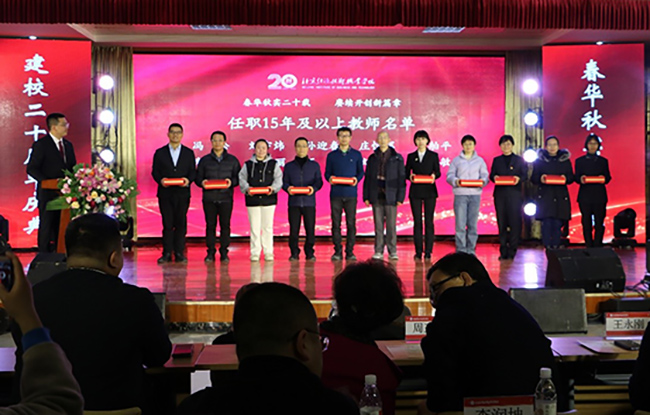 北京经济技术职业学院举办建校20周年大会 为执教15年以上教师颁奖