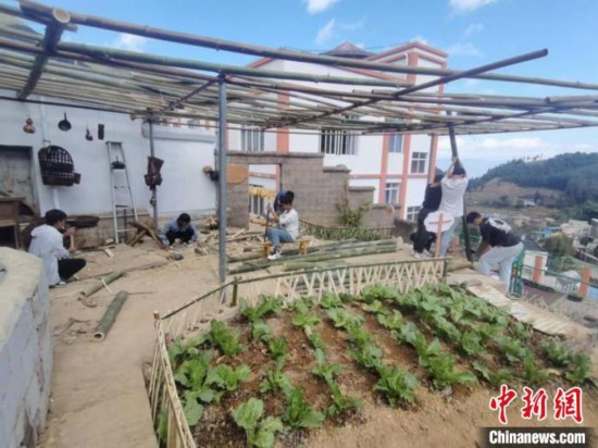 图为龙潭中心学校学生们自己动手,修建蔬菜种植园。龙潭中心学校 供图