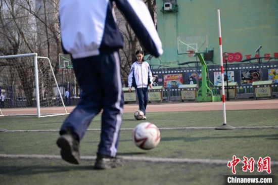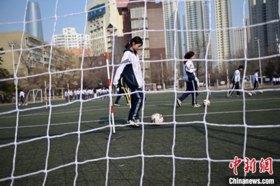 图为沈阳市第一三四中学滨河路分校学生在上体育课。中新网记者 于海洋 摄