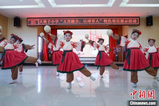 图为在西宁市大堡子小学,学生展示“蹴鞠”舞蹈。马铭言 摄
