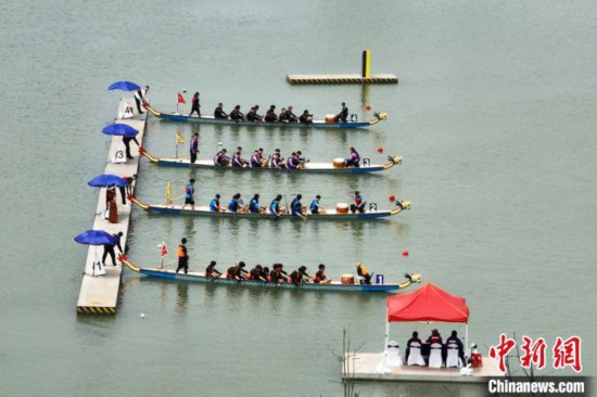 多支龙舟队蓄势待发。(无人机照片)陈家乐摄