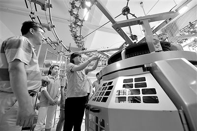 杭州职业技术学院服装设计专业教授卢华山(左一)指导学生使用数字化设备。