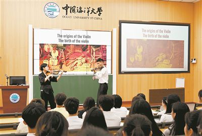 今年以来,中国海洋大学以建校百年为契机,积极探索美育教学社会实践改革,倡导“让美育走出课堂”,教演互促经常性开展校外公益演出。图为中国海洋大学艺术系学生在美育通识课上学习。