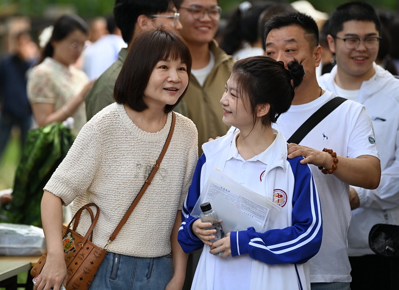 6月7日,在陕西西安高新第一中学南校区考点,家长送考生进入考场。新华社发