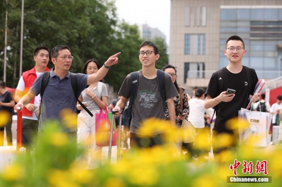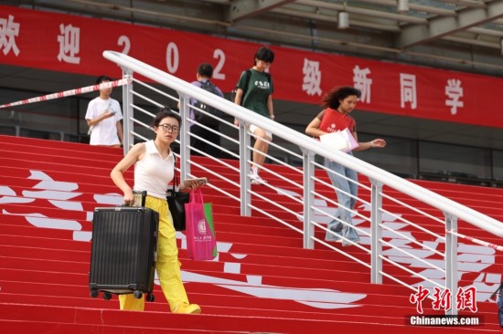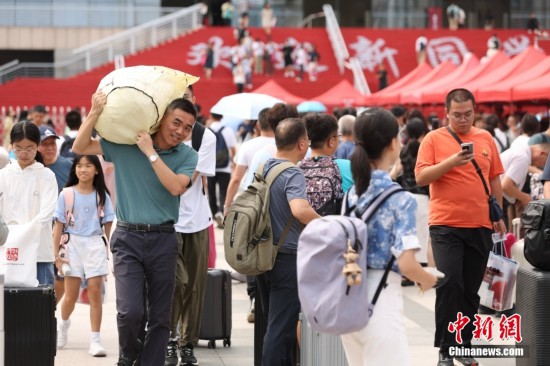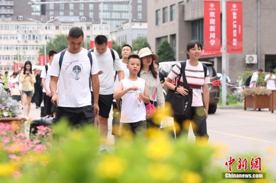 8月19日,北京大学迎来2024级新生报到。图为学生带着家长一起报到。